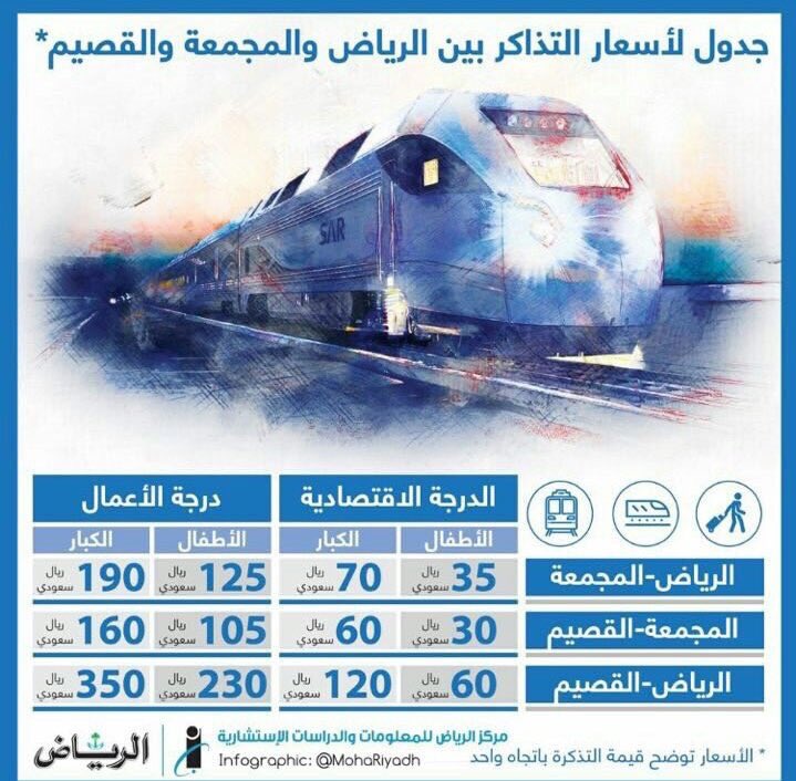 مشعل الهويمل On Twitter سعر تذكرة قطار سار من ٢ ابريل بتكون ١٢٠ريال من الرياض للقصيم والعكس مدة الرحلة ٢ ٣٠ساعة يتوقف في المجمعة سعر تذكرة الطيران بـ ١٦٩ ريال Https T Co U6lcyais7s