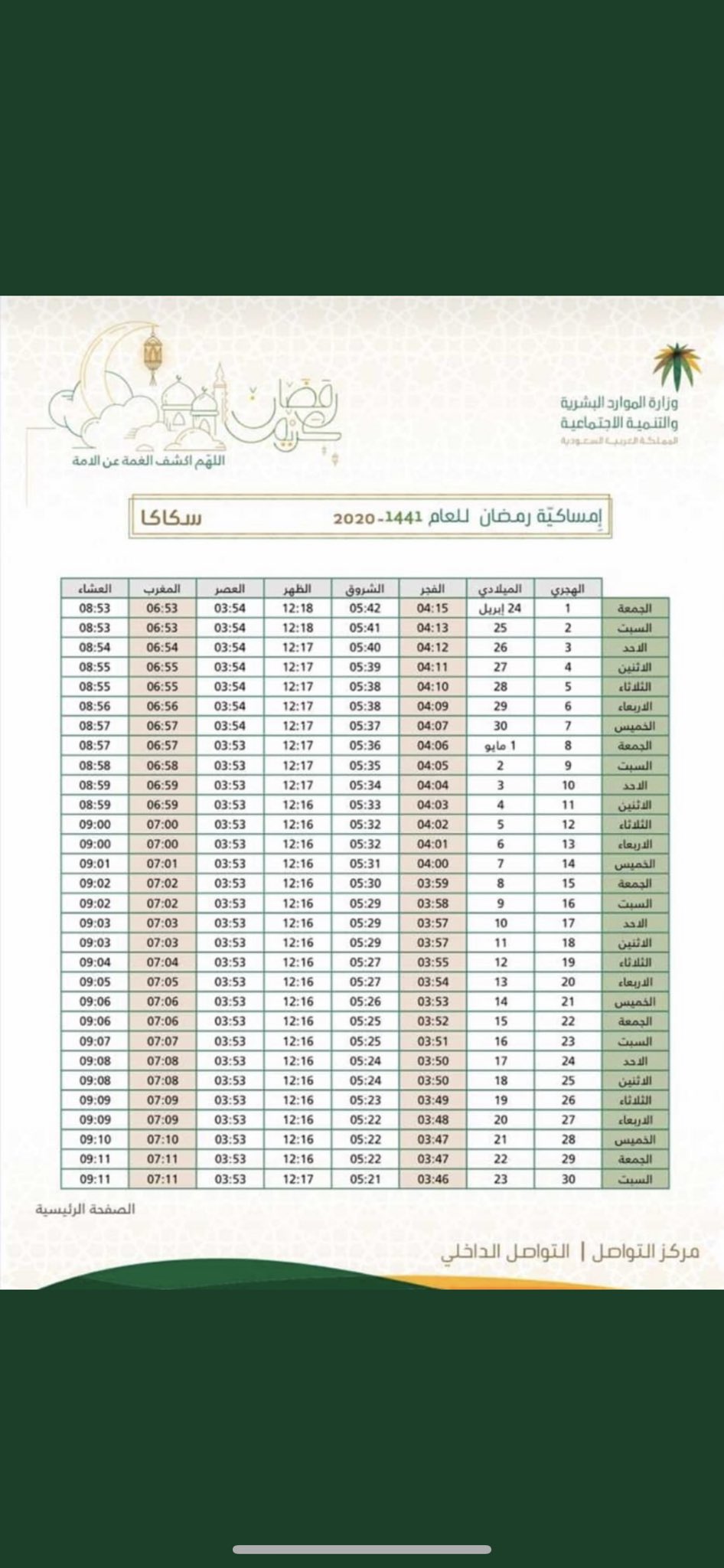 قروب الجوف On Twitter امساكية رمضان الجوف سكاكا 1441