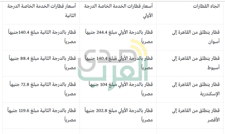 أسعار تذاكر القطارات الجديدة بين القاهرة والوجهين البحري والقبلي المصري اليوم