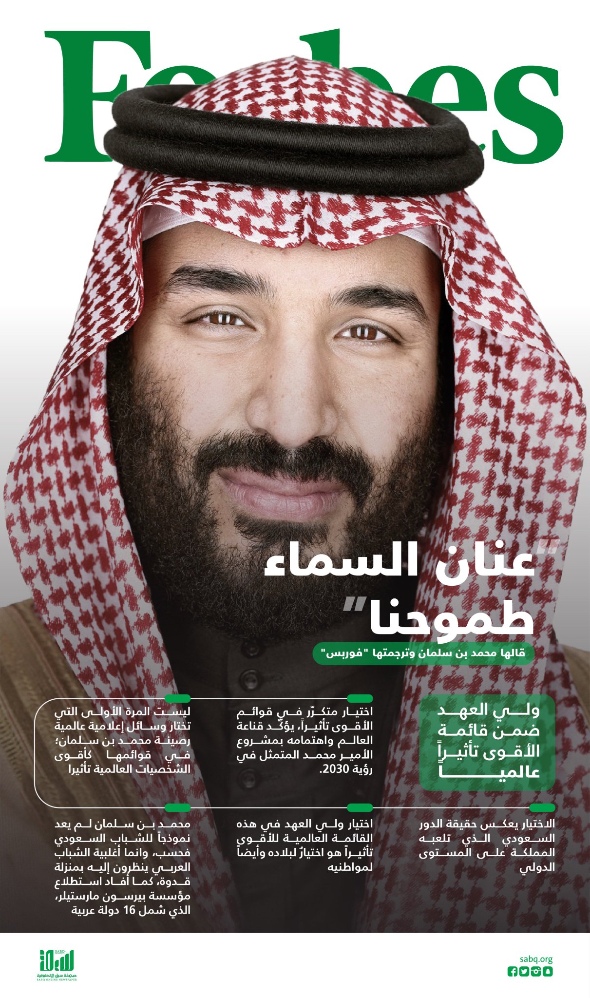 صحيفة سبق الإلكترونية V Twitter عنان السماء طموحنا قالها محمد بن سلمان وترجمتها فوربس ولي العهد ضمن قائمة الأقوى تأثيرا عالميا سبق