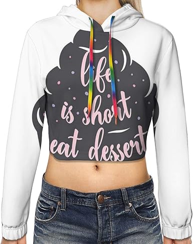 Amazon Com Women S Cropped Hoodie Cursive Typography On Cupcake Silhouette With Sweet Dots S Xl Clothing