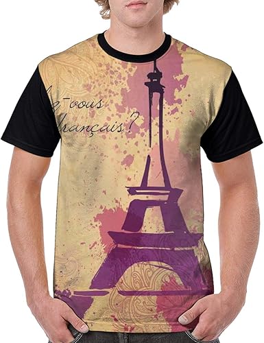 Amazon Com Man S T Shirts French Cursive Wordprint Eiffel Doodle Silhouette Pastel Splash Retro Print Clothing
