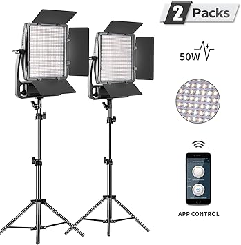 Amazon Com Gvm Led Video Light With App Control Dimmable Bi Color 50w Video Lighting Kit Photography Lighting With 832pcs Led Beads 25000lux 0 5m 2 Packs Professional Led Light Panel With Tripod 2300k 5600k