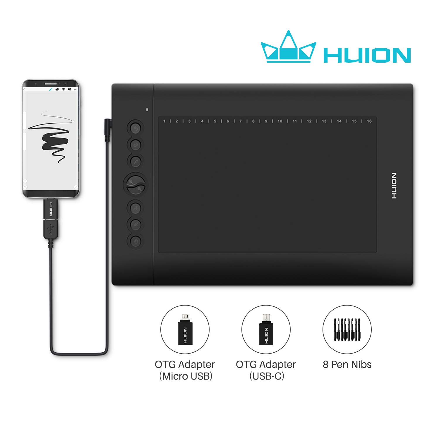 Amazon Com Huion Hs610 Graphics Drawing Tablet Android Devices Supported Tilt Function Battery Free Stylus With 8192 Pen Pressure Computers Accessories