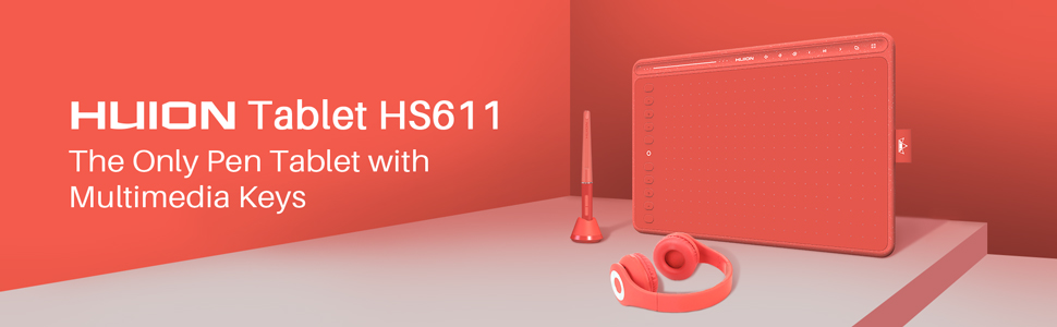 Amazon Com Huion Hs611 Graphics Drawing Tablet 10x6 Inch With 8192 Levels Battery Free Pen 8 Multimedia Keys And 10 Press Keys Support Android Ideal Use For Distance Education And Wed Conference Coral Red Computers