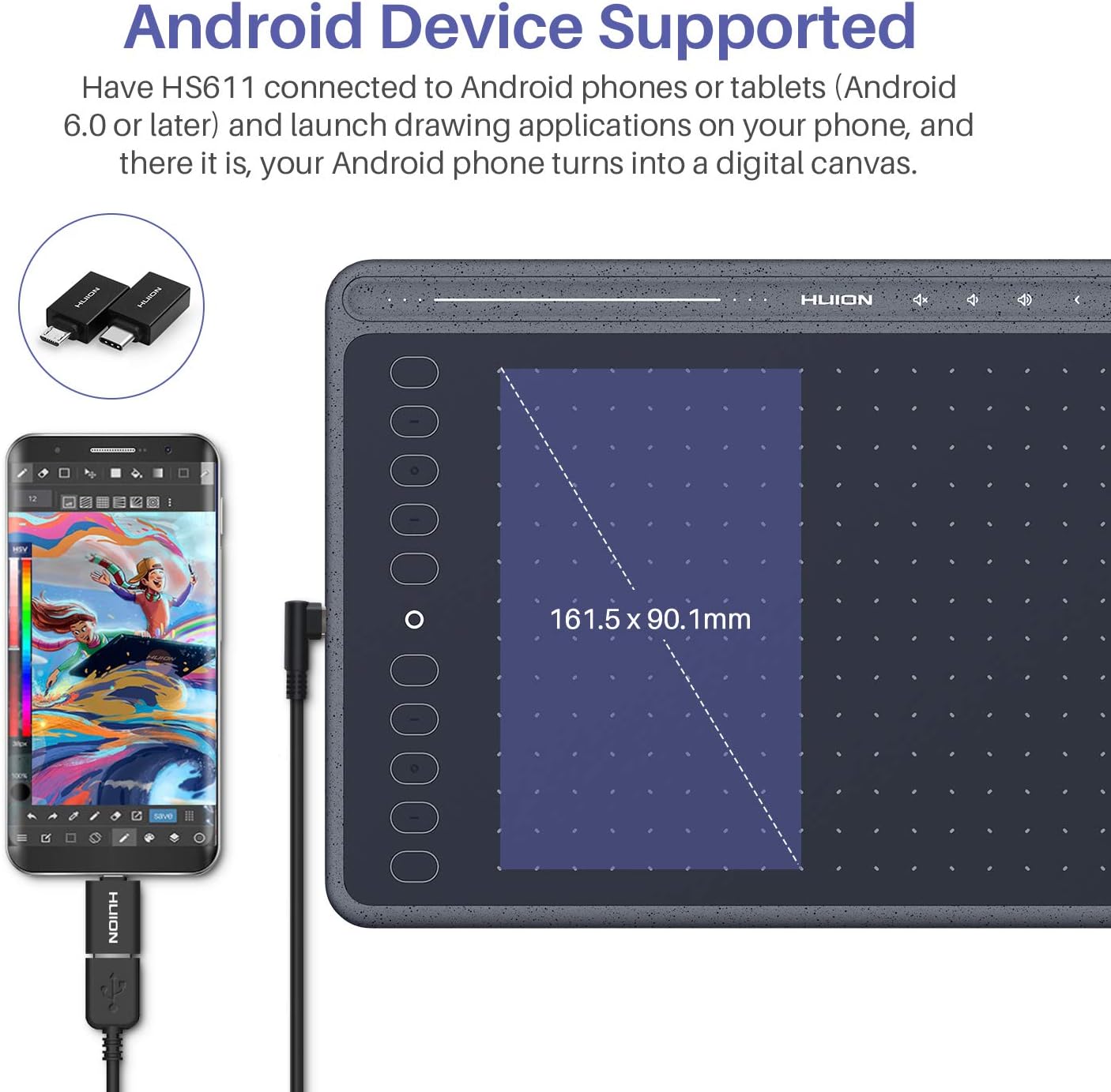 Amazon Com 2020 Huion Hs611 Graphics Drawing Tablet Android Support With 8 Multimedia Keys Battery Free Stylus 8192 Pressure Sensitivity Tilt 10 Press Keys For Art Beginner 10inch Space Grey Computers Accessories
