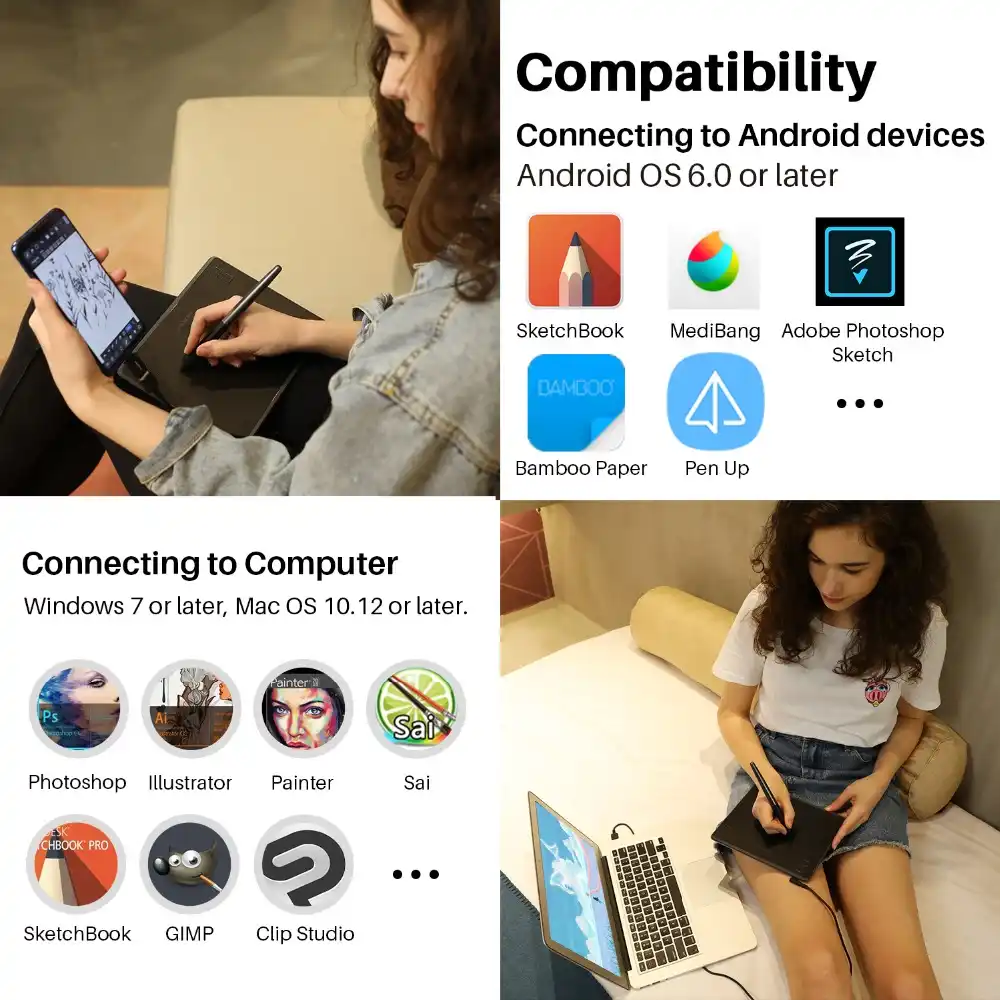 Amazon Com Huion Hs64 Digital Graphics Drawing Tablet Android Support With Battery Free Stylus 8192 Pressure Sensitivity 4 Express Keys For Beginner 6 3x4inch Computers Accessories