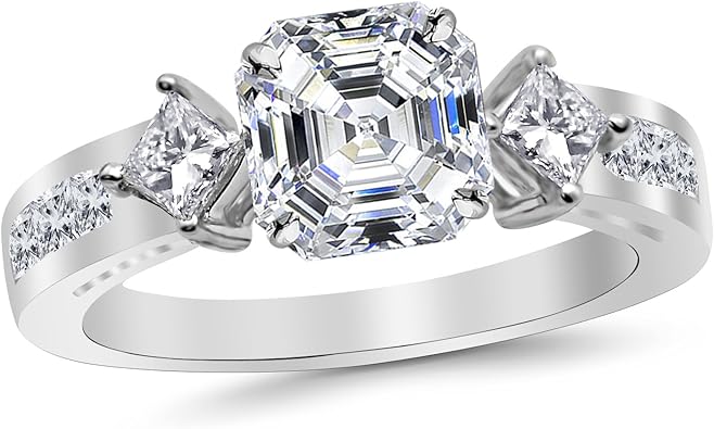1 87 Carat T W Asscher Channel Set 3 Three Stone Princess Diamond Engagement Ring K Vvs2 Clarity Center Stones Amazon Com