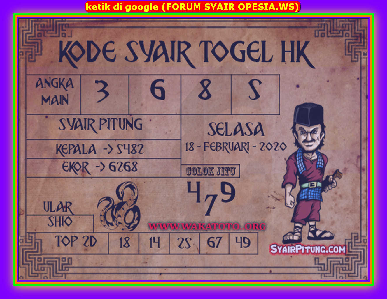 Ruang Prediksi Syair Hongkong Jum At 14 02 2020 Kalong Facebook