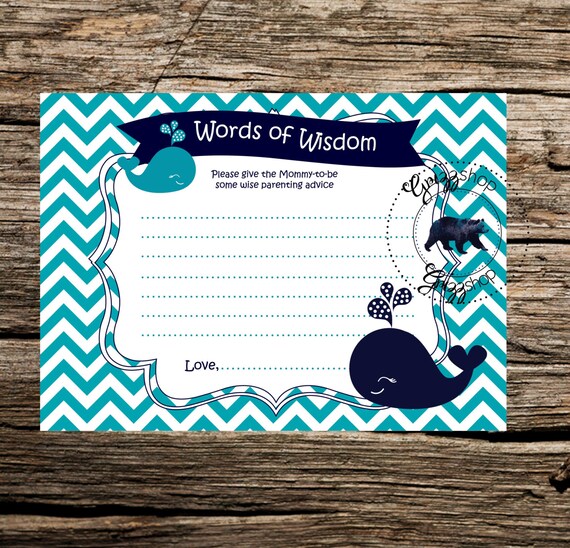 Blue Whale Words Of Wisdom Baby Shower Game Etsy